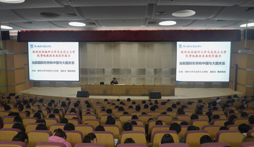 2015年3月30日晚6:30,我院行政楼学术报告厅内座无虚席,扬州大学马克思主义学院副院长曹峻教授受邀在此作了题为“当前国际形势和中国与大国关系”的报告。我院学工处副处长解厚荣老师、各年级辅导员、党校团校培训学员及各班班长共500余人聆听了报告会。报告会由学工处副处长解厚荣主持。
