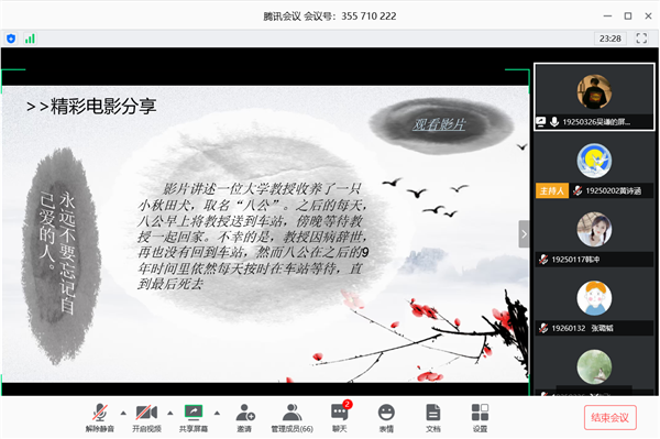 通过本次书籍、电影分享交流会,同学们认识到,居家完成专业学习固然重要,同时,培养良好的个人学习习惯,锤炼个人品质,树立优良学风,感受经典魅力,丰富精神世界,提升人生境界,也是新时代大学生的必修课。