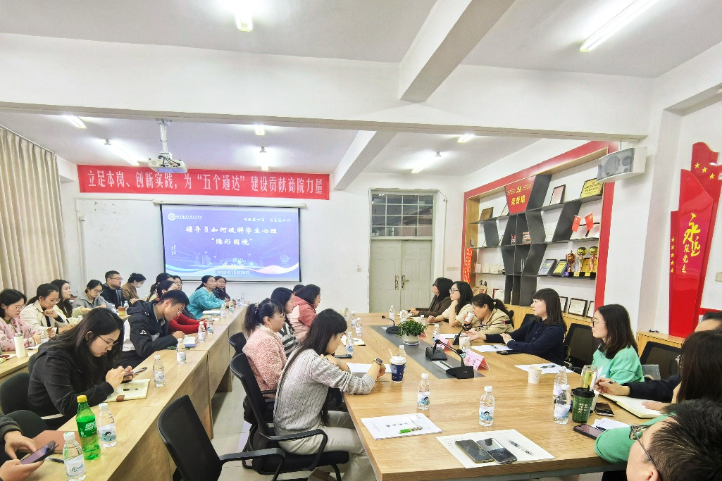 10月30日下午,由学生工作处主办、商学院承办的“如何破解学生‘隐性困扰’”心理主题辅导员沙龙在扬实2302会议室举行。活动特邀江苏省扬州五台山医院卜茹、夏旭兰、陈思三位专家参与交流,学生工作处副处长鲁淑红,学生工作处教育发展中心张璇、袁新进及各学院辅导员代表参加,沙龙由商学院党总支书记梁一丹主持。