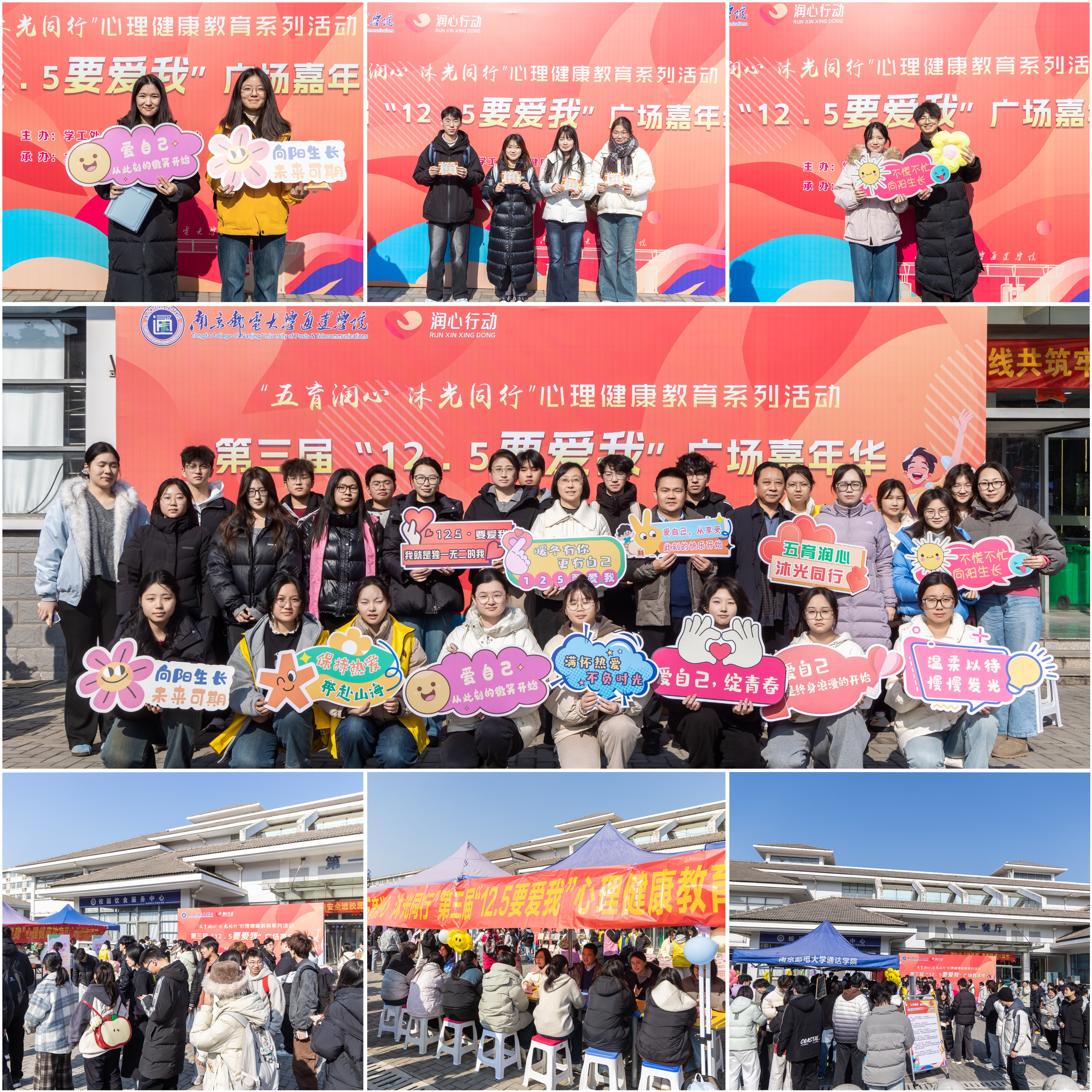 12月5日中午,我院在一食堂广场开展了“五育润心,沐光同行”第三届“12.5要爱我”广场嘉年华活动。学生工作处负责人和心理健康教育中心专兼职咨询师以及千余名师生参与活动。
