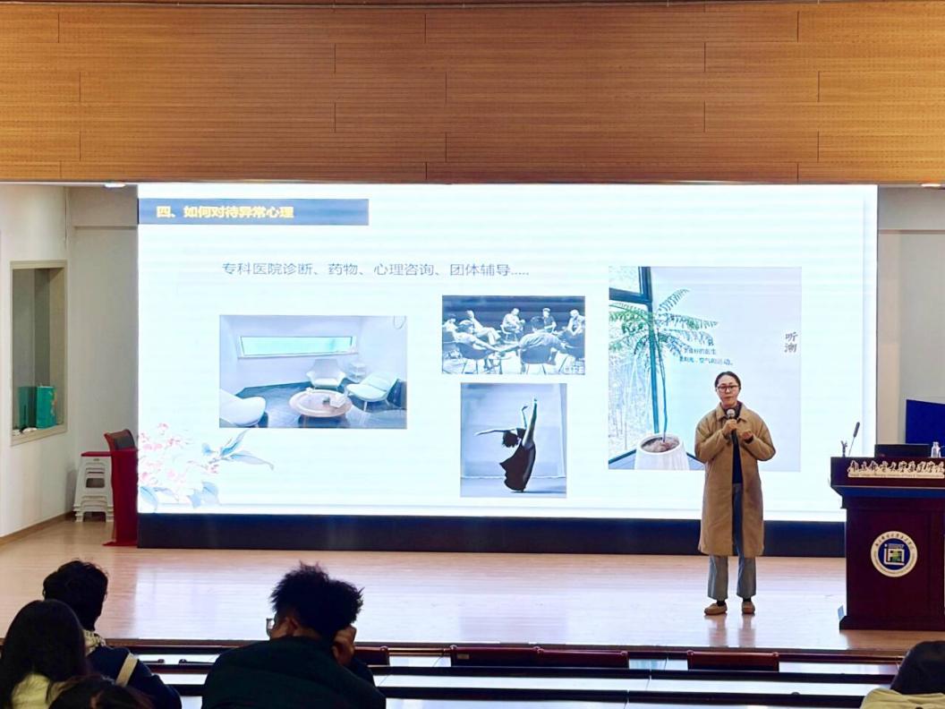 12 月 10 日下午,学工处心理健康教育中心在实验楼报告厅成功组织开展 2025 年秋季学期心理委员技能培训。本次培训由心理健康教育中心佘韵婕老师主讲,2022 级、2023 级、2024 级全体班级心理委员参与系统学习。