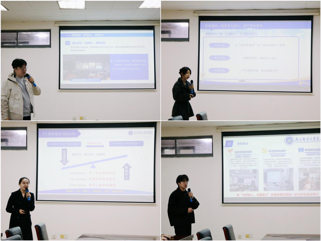 刘伟在总结讲话中,对本次答辩组织成效及新辅导员整体表现予以充分肯定,他结合辅导员职业要求与学院育人实际,对新入职辅导员提出四点期望:一是锤炼工作作风,树立良好形象,坚持原则、公道正派,做到公信度与育人温度统一,成为学生信赖依靠的育人力量;二是抓好骨干培养,凝聚育人合力,建强学生骨干队伍,发挥其桥梁纽带与示范引领作用;三是夯实基础工作,严守安全底线,做细做实日常管理、思想引导、心理关怀、风险防范等工作,坚守学生安全稳定底线;四是强化专业精进,打造特色品牌,立足岗位深耕业务,在科研育人、学风建设、就业服务等领域形成亮点,提升育人实效与影响力。